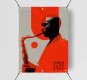 Pura freschezza con un look vintage: questo lavoro graficamente brillante cattura l'essenza del jazz liscio in un linguaggio di design minimalista. L'iconica combinazione di colori bicolore - rosso brillante su grigio tenue - ricorda le leggendarie copertine dei dischi Blue Note degli anni Sessanta. La griglia e la formazione di blocchi geometrici citano le tecniche di serigrafia di Warhol, mentre l'eleganza minimalista ricorda i manifesti cinematografici di Saul Bass. Gli elementi circolari danzano intorno al sassofono come note visive. Il retrò chic incontra la perfezione grafica. Un must per gli amanti del jazz e del design!