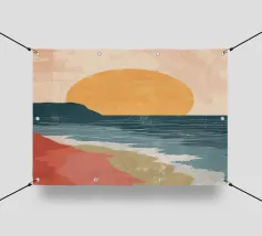 Abbracciate la profonda bellezza della serena solitudine. Questo paesaggio minimalista cattura il momento di quiete in cui il sole bacia l'orizzonte, proiettando una calda luce su un mare tranquillo. Utilizzando forme semplici e una tavolozza di terracotta e blu tenui, questo pezzo è un invito aperto a fermarsi, respirare e trovare un momento di tranquillità in un mondo affollato. È l'opera d'arte perfetta per creare un punto focale calmo e meditativo in salotto, in camera da letto o in qualsiasi altro spazio in cui si cerchi pace e una dolce evasione.