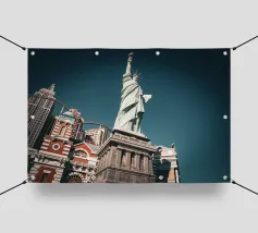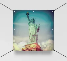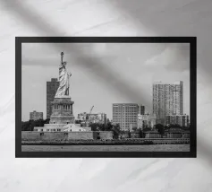 Questa affascinante fotografia in bianco e nero mostra l'iconica Statua della Libertà contro l'imponente skyline di Manhattan, simbolo di libertà e democrazia. Con un design elegante, l'opera d'arte combina l'estetica moderna con la bellezza senza tempo di questo famoso simbolo e aggiunge un tocco di raffinatezza a qualsiasi ambiente.