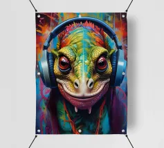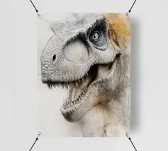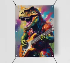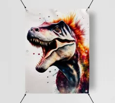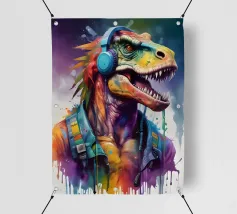 Questo vibrante T-Rex sfoggia un paio di eleganti occhiali da sole, che fondono la forza preistorica con la modernità. Un pezzo audace e divertente per gli amanti dei dinosauri e dell'arte tagliente.