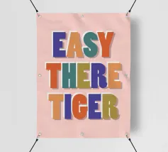 Un vivace disegno tipografico in stile retrò con la frase "Take It Easy" in grassetto, con caratteri ispirati agli anni '70. Il caldo mix di rosso, blu e verde menta con accenti di stelle aggiunge un'atmosfera giocosa e nostalgica, perfetta per un'estetica rilassata ed elegante. Un pezzo elegante e nostalgico che irradia calma e gioia. Creato da showmemars