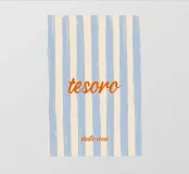 "Tesoro" significa tesoro - in italiano e in spagnolo. Questo design combina una calda tipografia con un morbido sfondo a righe e l'aggiunta ironica "studio scusi". Ideale per le anime creative, gli amanti del design e dell'estetica mediterranea.