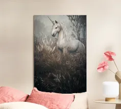 Sperimentate la pura magia di una creatura leggendaria con questo splendido ritratto di unicorno. Catturato in uno stile artistico senza tempo, il maestoso unicorno bianco si erge con grazia e potenza. Lo sfondo minimalista e strutturato esalta la sua bellezza eterea, rendendolo un pezzo sofisticato e incantevole per un interno classico o moderno, per la stanza di un bambino o per qualsiasi spazio che abbia bisogno di un po' di meraviglia.