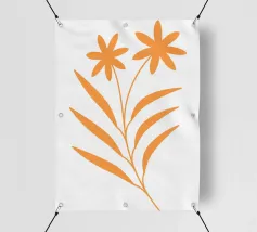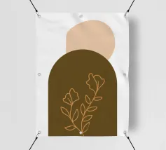 Un semplice disegno a linee marroni rappresenta una pianta con tre rami e piccole forme che ricordano foglie o boccioli. Lo stile minimalista e i colori neutri conferiscono un'atmosfera astratta.