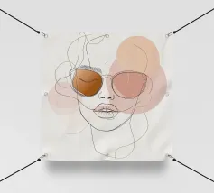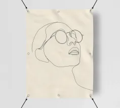 Un tocco di sicurezza giocosa e di chic moderno. Questa illustrazione artistica a una linea cattura una donna elegante con un sottile ammiccamento, vista attraverso occhiali da sole colorati di rosa. I blocchi di colore astratti in rosa blush e oro caldo aggiungono un tocco morbido e contemporaneo. Un pezzo perfetto per portare un'energia leggera e alla moda nel vostro spazio.