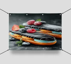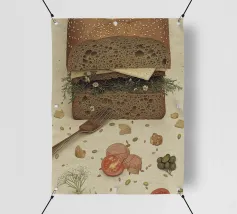 Toast Deco è un'opera d'arte digitale umoristica e allo stesso tempo esteticamente sofisticata, progettata come grafica computerizzata giocosa. L'attenzione si concentra su un toast stilizzato, non come cibo, ma come oggetto decorativo, messo in scena graficamente. Con contorni netti, texture sottili e dettagli creativi, il quotidiano viene inserito in un nuovo contesto artistico. La rappresentazione digitale gioca con i contrasti tra i colori caldi del pane, gli sfondi minimalisti e gli elementi decorativi posizionati con cura, come forme di topping, motivi o effetti astratti di dispersione.