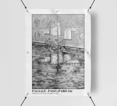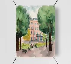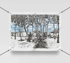 Stampa di un disegno originale di Plaça de la Virreina nel quartiere Gràcia di Barcellona.