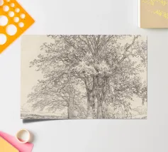 Disegno di paesaggio arboreo d'epoca rimasterizzato.