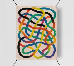 Colori vivaci in un movimento fluido: Questo poster d'arte moderna mostra forme intrecciate, simili a nastri, nei colori rosa, arancione, giallo e blu. La composizione curva crea un equilibrio dinamico e una profondità visiva grazie alla sovrapposizione delle trasparenze. Perfetto per spazi creativi, interni moderni e pareti colorate con un occhio di riguardo al design.