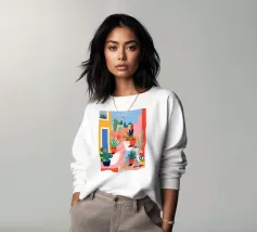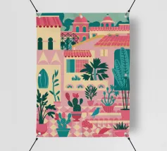 Questo disegno porta in casa vostra la gioia di vivere mediterranea e la leggerezza estiva. L'illustrazione colorata mostra un vivace patio pieno di piante fiorite e cactus in vasi eleganti, circondati da colori caldi e terrosi. L'aspetto moderno e disegnato a mano e l'armoniosa composizione cromatica di rosa, giallo, blu e verde rendono il motivo un richiamo visivo ideale per murales, tazze, cuscini e molto altro. Perfetto per gli amanti delle piante che desiderano portare la natura e il colore nei loro spazi abitativi. Un'attrazione per ogni casa o un regalo creativo.