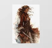 Questa illustrazione espressiva mostra una piratessa battagliera con la sciabola sguainata, che sfida il vento in una posa eroica. Il suo lungo mantello soffia nel vento, mentre la luce accentua i suoi contorni. Lo stile pittoresco combina la femminilità con la forza e il senso dell'avventura. Ideale per gli amanti dell'arte fantasy, delle avventure marinaresche o delle figure femminili forti. Questo quadro simboleggia il coraggio, la libertà e l'indipendenza: perfetto come motivo di forza per spazi creativi o personalità dallo spirito ribelle.