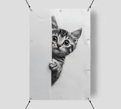 Un simpatico gattino dice "Ciao" in un'illustrazione minimalista, perfetta per gli amanti degli animali. Il suo ritratto in bianco e nero donerà gioia e fascino a qualsiasi parete artistica.