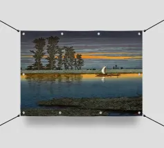 Ushibori di Kawase Hasui cattura il fascino tranquillo di un villaggio sull'acqua, con le barche che riposano lungo le rive tranquille e la luce soffusa che si riflette sull'acqua. I colori delicati e le ombreggiature suggestive di Hasui creano una scena pacifica e contemplativa che mette in risalto la bellezza della vita quotidiana nel Giappone rurale. Ideale per gli amanti delle stampe giapponesi, dei paesaggi shin-hanga e delle tranquille ambientazioni costiere, quest'opera d'arte conferisce serenità, profondità culturale ed eleganza senza tempo a qualsiasi interno.