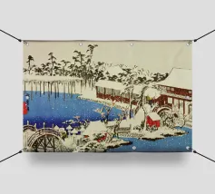 Japanese Ukiyo-e and Shin-Hanga prints, from serene landscapes by Kawase Hasui to the iconic waves of Hokusai and Hiroshige. Ukiyo-e, literally “pictures of the floating world,” is a Japanese art form that captures the beauty, elegance, and transience of everyday life. Originating in the Edo period, these woodblock prints and paintings depict landscapes, city scenes, theater, and the grace of women, blending realism with stylized design. Characterized by bold lines, harmonious color palettes, and meticulous attention to detail, Ukiyo-e celebrates the ephemeral moments of life—the shimmer of rain on a street, the curve of a mountain, the fleeting expression of a courtesan. Later, the Shin-Hanga movement revived this tradition with a modern sensibility, emphasizing light, mood, and atmosphere.