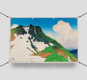 Travel Souvenir Third Series View of Asahigadake from Mount Haku di Kawase Hasui presenta un'ampia veduta di montagna con aria frizzante, cime stratificate e una morbida luce atmosferica. Le delicate transizioni di colore e la composizione raffinata di Hasui catturano la maestosità del paesaggio alpino giapponese, creando un'atmosfera serena e contemplativa. Ideale per gli amanti delle stampe giapponesi su blocchi di legno, delle scene di montagna shin-hanga e della tranquilla arte naturalistica, questo pezzo conferisce profondità, eleganza e bellezza senza tempo a qualsiasi interno.