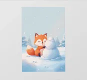 Con un sorriso giocoso, Voxy modella una piccola scultura di neve in una foresta innevata. Il blu tenue, la delicata nevicata e la simpatica energia invernale ne fanno un'illustrazione perfetta per i bambini e gli amanti delle vacanze.