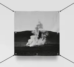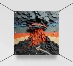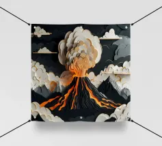 Un vulcano torreggiante si staglia contro il cielo, con le sue pendici scure striate da vecchie colate di lava. Densi pennacchi di fumo salgono dal cratere, si disperdono nell'aria e dipingono l'orizzonte con sfumature di grigio. L'atmosfera è tesa e viva, come se la terra stessa respirasse.