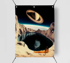 dove sei andato senza di me. ~ Una donna si trova da sola in un paesaggio simile a quello di Marte e guarda la Terra. vibrazioni retro futuristiche e toni terrosi