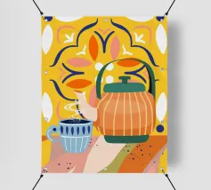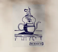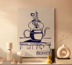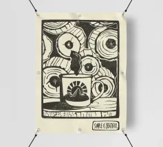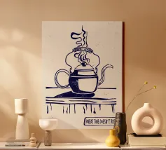 Stampa artistica minimalista in stile linoleografico di un bollitore fumante con la frase "Where Time Doesn't Rush". Un'illustrazione calda e di ispirazione vintage, perfetta per gli amanti del caffè, del tè e della vita lenta. Questa stampa da parete monocromatica conferisce un fascino accogliente e rustico a cucine, caffè e angoli di lettura, rendendola un regalo prezioso per coloro che amano le mattine tranquille.
