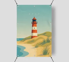 Design di viaggio minimalista dell'Inghilterra meridionale con le famose scogliere bianche (chalk cliffs) e il faro sulla costa inglese vicino a Dover. Tipico paesaggio di scogliere chiare.