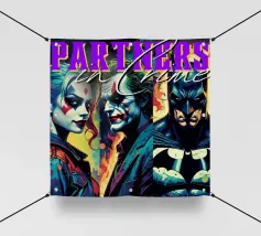 Questo poster digitale in stile fumetto cattura l'essenza dell'antagonista più famoso della città, apportando al contempo un tocco di estetica urbana con un impressionante skyline della città.