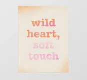 "Cuore selvaggio, tocco morbido": una tipografia potente che unisce forza e dolcezza. Questo design è la dichiarazione perfetta per chiunque voglia abbracciare il proprio lato selvaggio con un tocco di morbidezza. Ideale per camere da letto, soggiorni o spazi creativi: un richiamo visivo che ispira e motiva.