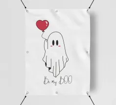 Un palloncino rosso con l'agghiacciante frase "Anche tu galleggerai". Il testo stilizzato imita la forma del palloncino, rafforzando l'atmosfera inquietante.