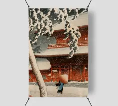 Zentsu-ji di Kawase Hasui offre una vista pacifica dello storico tempio Zentsu-ji, catturata con luci soffuse, ombre delicate e i dettagli atmosferici tipici di Hasui. La composizione mette in risalto la tranquilla bellezza del parco del tempio, fondendo l'architettura tradizionale con la calma della natura circostante per evocare un senso di riflessione e armonia. Ideale per gli amanti delle stampe giapponesi, dei paesaggi shin-hanga e delle tranquille scene spirituali, quest'opera d'arte conferisce eleganza, serenità e fascino culturale senza tempo a qualsiasi interno.