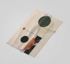 This unique motif combines geometric shapes with a harmonious colour palette of green, black and red on a warm beige background. The precise arrangement of lines, circles and semi-circles gives the design a modern yet artistic feel. Perfect for wall murals, cushions, mobile phone covers and much more - ideal for anyone who wants to integrate contemporary aesthetics into their everyday life.