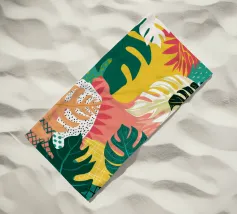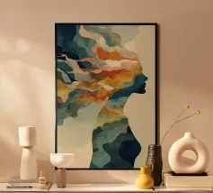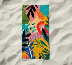 Una giocosa composizione astratta, ricca di audaci forme ispirate alla giungla e di pennellate vivaci. Questo disegno a mano combina verde acqua, blush, senape e menta in un layout gioioso e contemporaneo, perfetto per ravvivare gli interni moderni con un tocco tropicale.