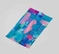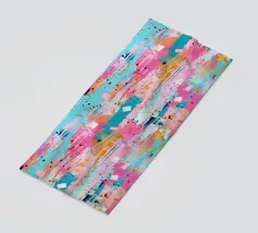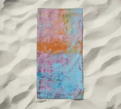 Le vibranti tonalità di rosa, blu e turchese si fondono in un vivace disegno astratto, creando un senso di movimento ed energia. I tratti audaci e i colori stratificati evocano un'atmosfera dinamica ed espressiva.