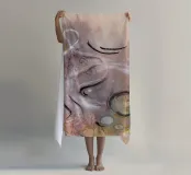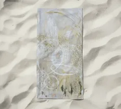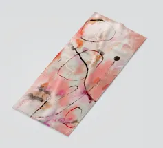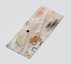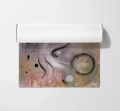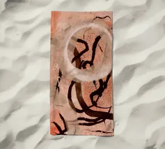 Linee fluide e danzanti emergono su uno sfondo rosa vellutato, dove le sfumature di malva, ocra e bianco si fondono in un'atmosfera eterea e vibrante. Tratti neri e circolari interrompono la morbida tavolozza cromatica, portando ritmo e contrasto, come impulsi di energia che attraversano lo spazio pittorico. Il dipinto parla di un sottile equilibrio tra gesto e silenzio, tra visibile e invisibile. È un'eco del movimento universale, dove la pittura diventa un linguaggio di energia e spirito.