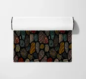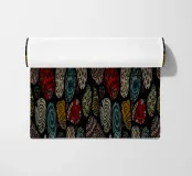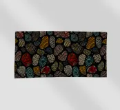Un ricco motivo astratto con forme organiche e superfici strutturate in colori caldi come verde acqua, rosso ruggine, giallo oro, corallo, beige e blu su sfondo nero. Perfetto per gli amanti dell'arte astratta, gli appassionati di texture, i fan dei colori caldi e tutti coloro che apprezzano le forme organiche con dettagli artistici e la raffinatezza della terra.