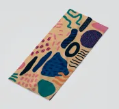 A playful abstract composition with various organic and geometric shapes and patterns in a palette of pink, blue, orange, and black, evoking a sense of joyful movement.