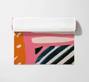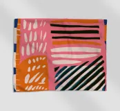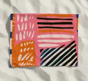 A vibrant and chaotic abstract composition of scribbles, shapes, and patterns, including rainbows and polka dots. The artwork is a joyful explosion of creative energy and uninhibited expression.
