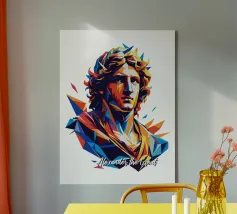 Scoprite la leggendaria potenza di Alessandro Magno con questo dinamico disegno WPAP Pop Art. Caratterizzata da audaci forme geometriche e colori vivaci, quest'opera d'arte cattura l'essenza di uno dei conquistatori più iconici della storia. Lo stile WPAP (Wedha's Pop Art Portrait) dà nuova vita all'immagine di Alessandro, fondendo forme astratte con un'estetica moderna. Ideale per gli appassionati di storia, gli amanti dell'arte e coloro che si ispirano alla visione e all'ambizione degli antichi condottieri, questo disegno è un suggestivo tributo all'eredità duratura di Alessandro Magno.