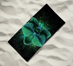 Un'illustrazione splendidamente stratificata e minimalista che presenta una maestosa catena montuosa innevata e i pendii inferiori ondulati, racchiusi in una forma astratta a goccia. Il disegno utilizza colori naturali e tenui e sottolinea i contorni sereni del paesaggio selvaggio.
