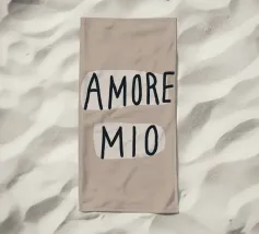 La scritta "Amore Mio" in stile boho su sfondo verde pastello. La tipografia moderna incarna la tendenza italiana e irradia un appassionato messaggio d'amore.