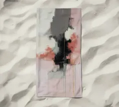 Un delicato pezzo floreale astratto con una forma centrale simile a un fiore in bianco e rosa tenue, con linee più scure simili a inchiostro che si irradiano verso l'esterno, come se svelassero l'anima di un fiore su uno sfondo tenue. Stile Melissa Herrington.