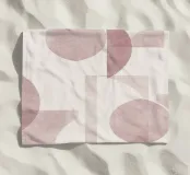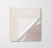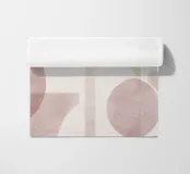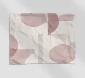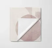 Il disegno presenta un'accattivante disposizione di cerchi, rettangoli e forme astratte di foglie sovrapposte, che alludono sottilmente a forme organiche all'interno della struttura. La texture granulosa aggiunge profondità e interesse visivo.