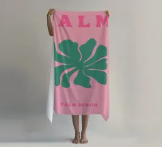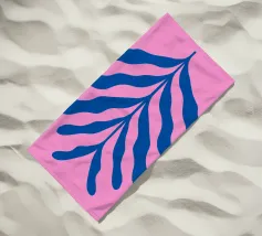 Un poster moderno di ispirazione pop art con il basilico come motivo grafico principale. Le foglie stilizzate di colore verde intenso spiccano sullo sfondo rosa acceso, completate dalla scritta "BASIL" in blu scuro.