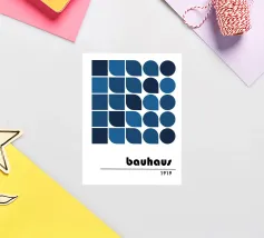 Questa opera d'arte ispirata al Bauhaus reimmagina le forme industriali con un tocco artistico. La disposizione astratta delle forme geometriche e dei toni primari invita lo spettatore a entrare in uno spazio in cui design e funzionalità parlano la stessa lingua.