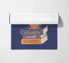 A design for all lovers of books and reading This design celebrates the love for reading with the word "Bibliophile" written in an elegant cutting character. Under an illustration of a pile of three books with the Sentence Adventure Await in Book "adds a touch of adventure and discovery.in general