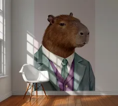 Un raffinato capibara vestito con un abito classico, che unisce fascino ed eleganza a un delicato tocco di umorismo - perfetto per le pareti della cameretta o per spazi giocosi.