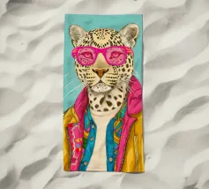 Illustrazione stilizzata di un carismatico ghepardo vestito in modo casual chic con occhiali da sole eleganti e una posa da dandy sicuro di sé. Con la sua tavolozza vibrante e il suo tocco favoloso, quest'opera d'arte celebra l'individualità, lo stile e la fiducia in se stessi. Perfetto se amate le vibrazioni della fauna tropicale con uno spirito moderno.