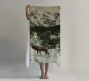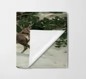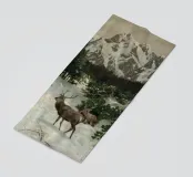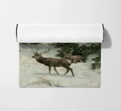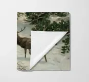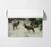 Un suggestivo motivo invernale: tre cervi si ergono maestosi in un paesaggio montano innevato, con abeti e cime sullo sfondo. I colori naturali e l'atmosfera tranquilla rendono questo disegno perfetto per gli amanti della natura e degli animali. Che si tratti di un murale, di un cuscino, di una tazza o di un poster, questo motivo porta il romanticismo invernale della fauna selvatica, l'eleganza e la tranquillità in ogni casa.