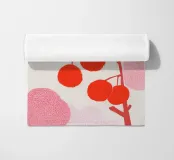 This modern wall mural shows stylised, bright red cherries on a graphically drawn branch with delicate, pink leaves and textures. The combination of bold colour accents and fine textures creates a harmonious interplay of freshness and elegance. The minimalist depiction in pastel and red tones makes this motif an ideal eye-catcher in the kitchen, dining room or creative living room.
