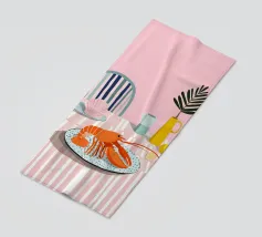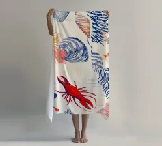 Un allegro motivo costiero con vivaci aragoste e conchiglie disposte in una semplice ripetizione all-over. Fresco, balneare e un po' preppy. Perfetto per portare le vibrazioni estive e il fascino del mare nella vita di tutti i giorni.
