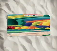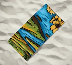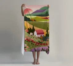 Un paesaggio panoramico delle dolci colline toscane, con strade tortuose, cipressi e campi resi con una tavolozza di colori ricchi e caldi che cattura la bellezza della campagna italiana.