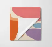 Un'opera d'arte astratta dinamica che presenta una collisione di forme organiche e audaci in colori vivaci come l'arancione, il rosa e l'azzurro intenso. La composizione è energica e moderna e rappresenta una forte dichiarazione visiva.
